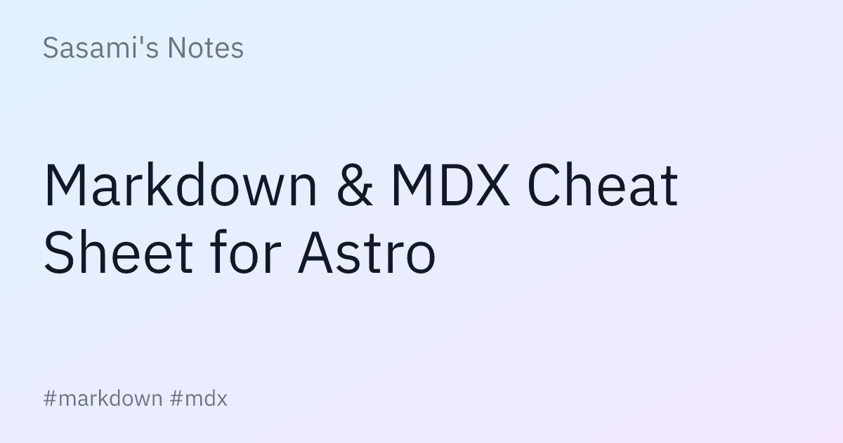 2025/12/11 markdown mdx Markdown & MDX Cheat Sheet for Astro Astroで使用できるMarkdown記法と、MDXの動的な機能を網羅したチートシート。
